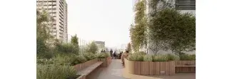 Les terrasses du centre PMF ont été initialement conçues afin d’accueillir le public pour des pauses en plein air tout en restant à l’intérieur de cet immeuble de grande hauteur. Toutefois, ces « forums d’altitude » ont été fermés en raison d’un manque de sécurité. L’objectif du projet Plein ciel est de rouvrir l’une de ces terrasses pour en faire un espace de convivialité végétalisé et un îlot de fraîcheur participant à la lutte contre le réchauffement climatique. Cette initiative participe également à la rénovation de l’urbanisme hérité des années 1970 dans le quartier où est localisé le centre.