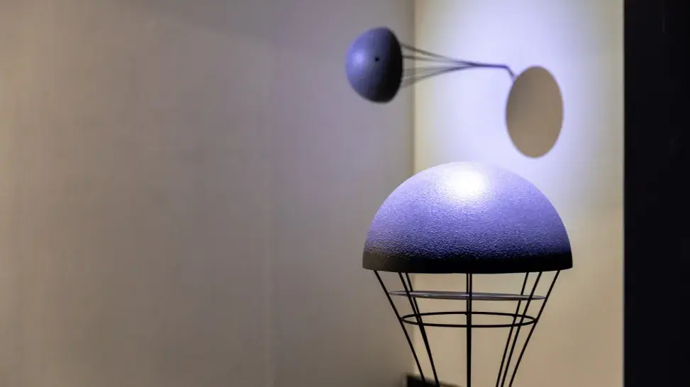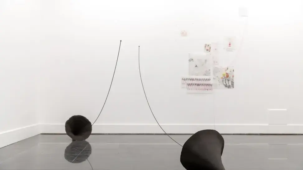 Byungsu a commencé par se spécialiser dans la céramique et le verre. « Désormais, je travaille à partir d’un sujet, et ensuite, je cherche les matériaux que je vais travailler comme du métal, du bois, de la résine ou encore de la terre », précise-t-il. Pour l’exposition, il a choisi des œuvres qu’il avait déjà créé, une photographie et deux sculptures. « J’ai fait ce choix par rapport à l’espace, mais aussi parce que je voulais montrer des pièces réalisées récemment et qui montrent le plus possible qui je suis. » Son travail se base sur une forme géométrique simple, la sphère pour Espace relatif et le cône pour Deux portails. « Je travaille souvent avec deux portails. L’idée est de pouvoir sortir de l’espace dans lequel nous sommes, de plonger brièvement dans une partie de l’infini et d’imaginer l’immensité. »